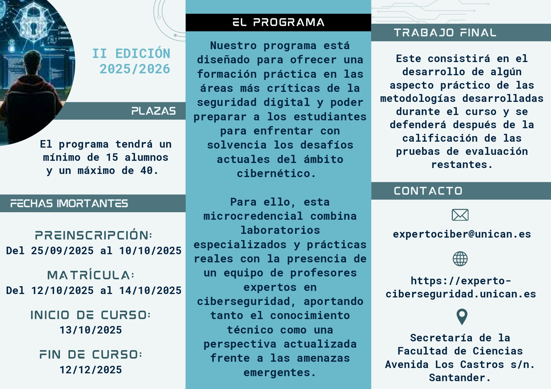 Desde la cátedra UC-INCIBE organizaremos, a lo largo del curso 2025-2026, tres formaciones de ciberseguridad: Fundamentos básicos de la ciberseguridad, Fundamentos técnicos de la misma y Hacking Ético, respectivamente.